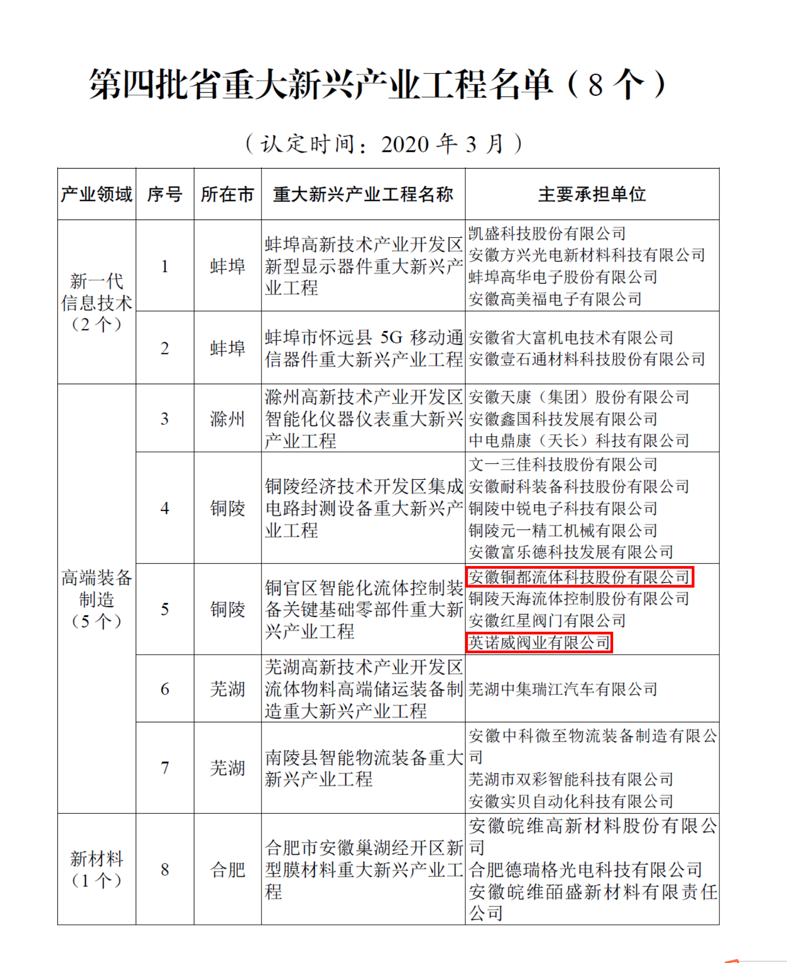 銅都流體與子公司英諾威閥業(yè)成功入選第四批安徽省重大新興產(chǎn)業(yè)工程名單。