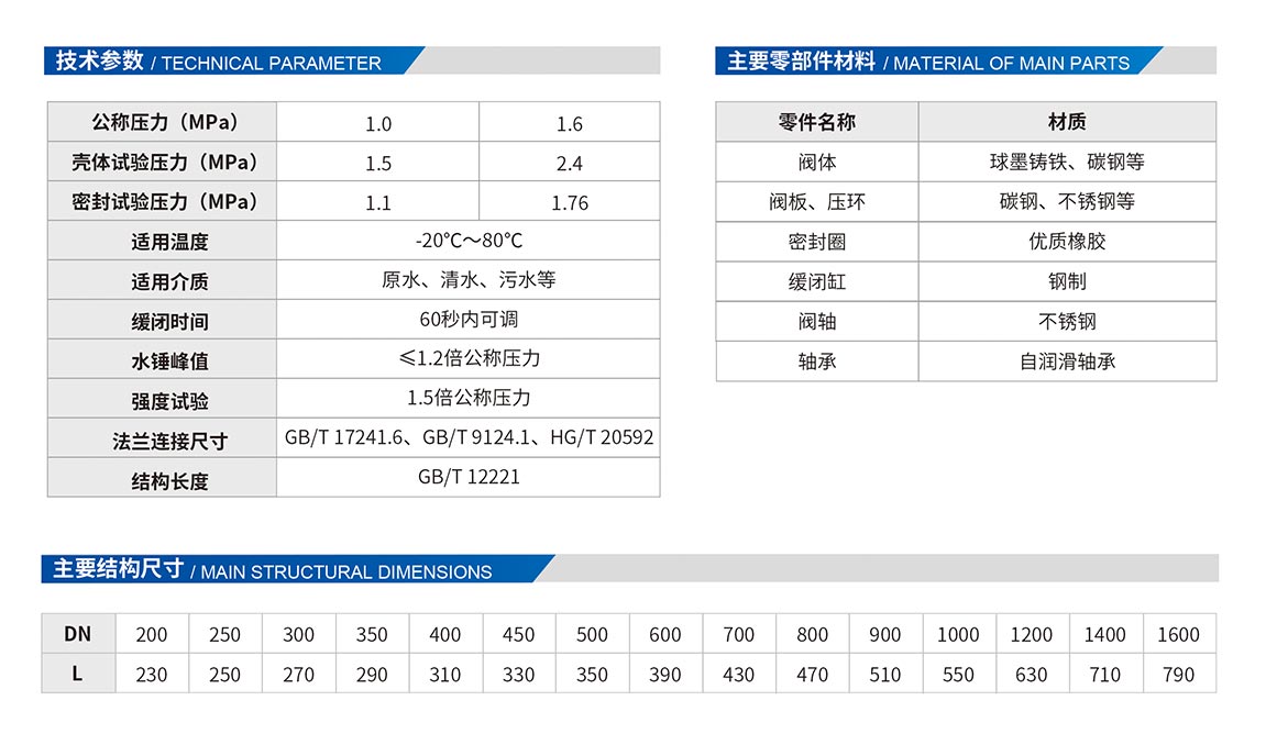 蝶形緩閉止回閥主要用于凈水、原水、污水、海水等介質(zhì)的供、排水管道上,安裝在水泵出口處,用以截?cái)嘟橘|(zhì)的回流,消除水錘,保護(hù)管道、水泵的安全運(yùn)行。其主要特點(diǎn):體形小、重量輕、結(jié)構(gòu)長(zhǎng)度只有旋啟式止回閥的三分之一左右。帶外置阻尼油缸,緩閉性能優(yōu)良,不受管道中介質(zhì)的影響,閥瓣先速關(guān)后緩閉,可防止破環(huán)性水錘。橡膠軟密封,結(jié)構(gòu)密封性能好,耐磨損,使用壽命長(zhǎng)。橡膠緩沖,運(yùn)行平穩(wěn),無震動(dòng)及噪音,比老式止回閥流阻小,有明顯的節(jié)能效果。